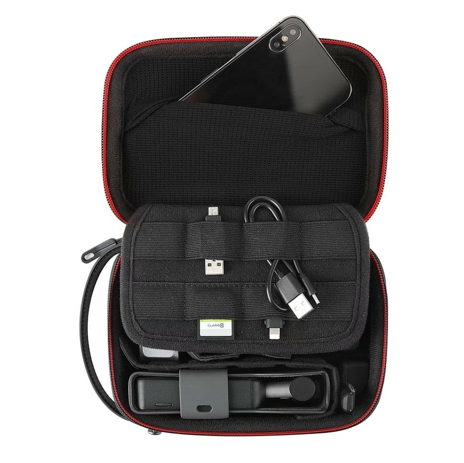 Кейс для переноски OSMO Pocket PGYTECH Mini Carrying Case может вместить OSMO Pocket и несколько аксессуаров. Он включает в себя два длинных и четыре коротких складных перегородки, которые помогают организовать область хранения. Сумка покрыта прочной водонепроницаемой оболочкой из нейлоновой ткани