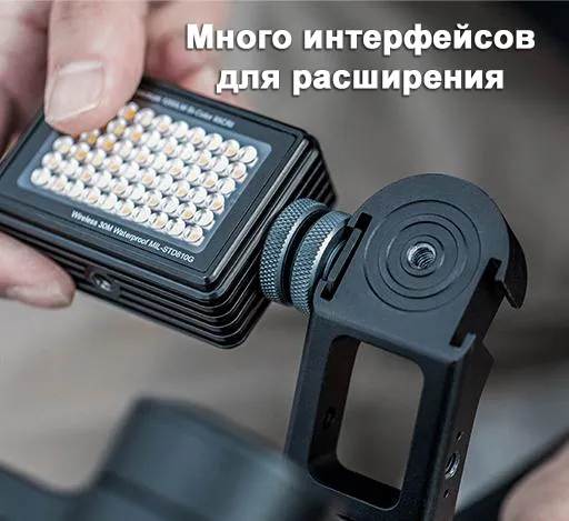 - Большие возможности для расширения: 3 интерфейса позиционирования Arri 1/4 и два интерфейса C old Shoe. Можно одновременно установить внешний монитор, смартфон и внешний микрофон.