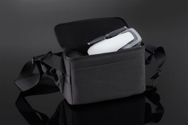 Оригинальная сумка для переноски комплекта DJI Mavic Air. В эту сумку помещается 1 коптер DJI Mavic Air, 3 аккумулятора, смартфон, хаб для зарядки, зарядное устройство и мелкие аксессуары, такие как кабели, USB адаптер.